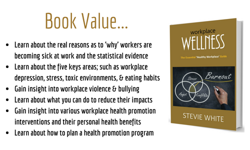 As the author of the “Workplace Wellness - The Essential Healthy Workplace Guide”, Stevie White was quite alarmed what his research was highlighting. For example, businesses of all sizes are often seeking help and more psychologists are seeing more employees who can’t cope.